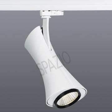 Track mounted spot with aluminium body and bracket and glass diffuser, 40° beam, 80° tilt and 355° rotation. Includes track adptor and LED driver.