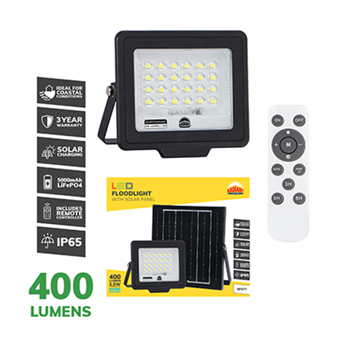 Radiant Solar LED 6500K Floodlight with Remote Control | 2.5w,5w,6w,7.5w,10w,13w,20w,26w